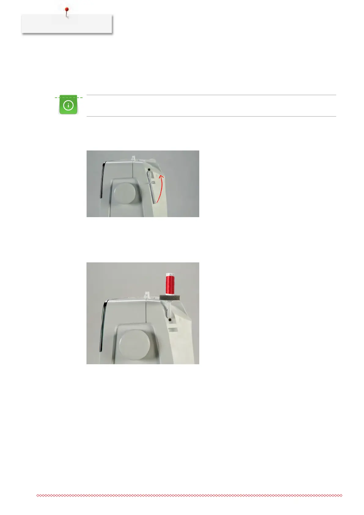 With metallic or other special threads, it is recommend to use the swiveling spool pin.