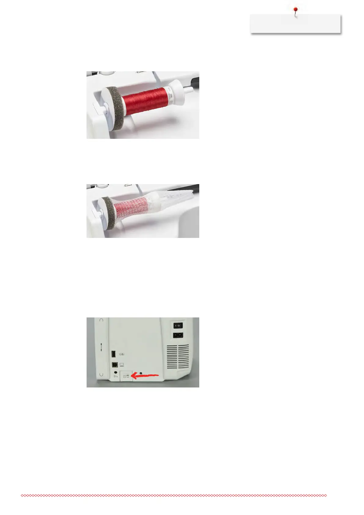 > Position the appropriate spool disc on the spool pin so that there is no space between the spool disc and