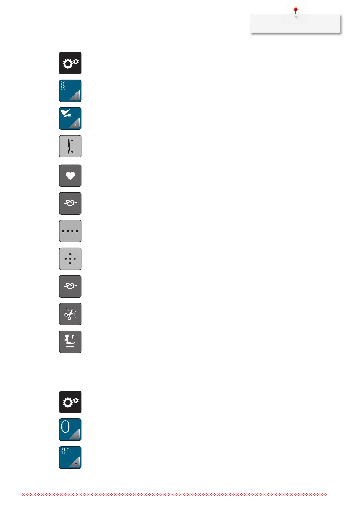 > To program the number of securing stitches, tap «Minus» or «Plus».