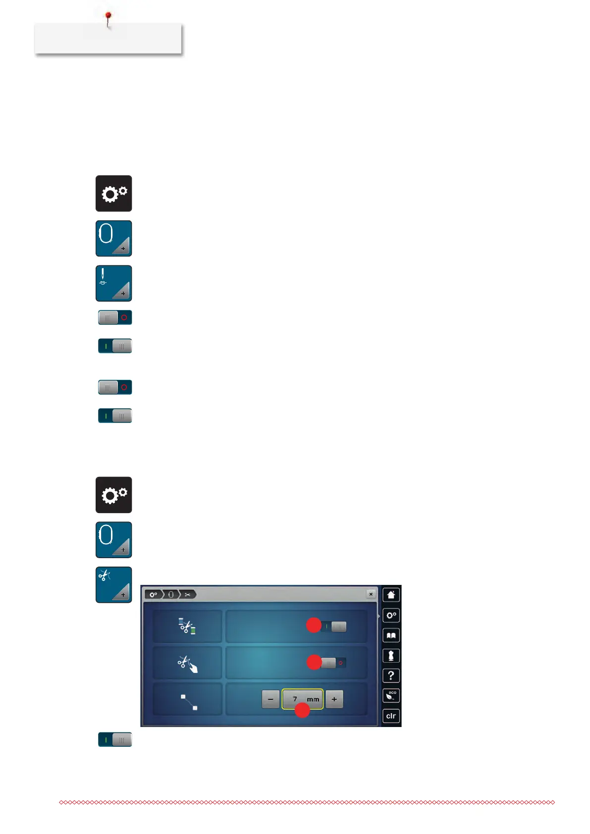 > Turn on the switch in the lower section to activate the securing stitches at the end.