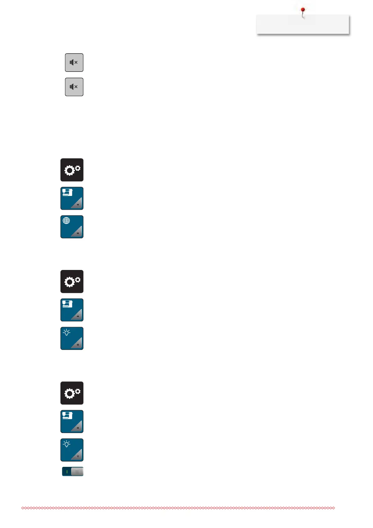 > Adjust the brightness of the sewing light in the lower section of the screen.