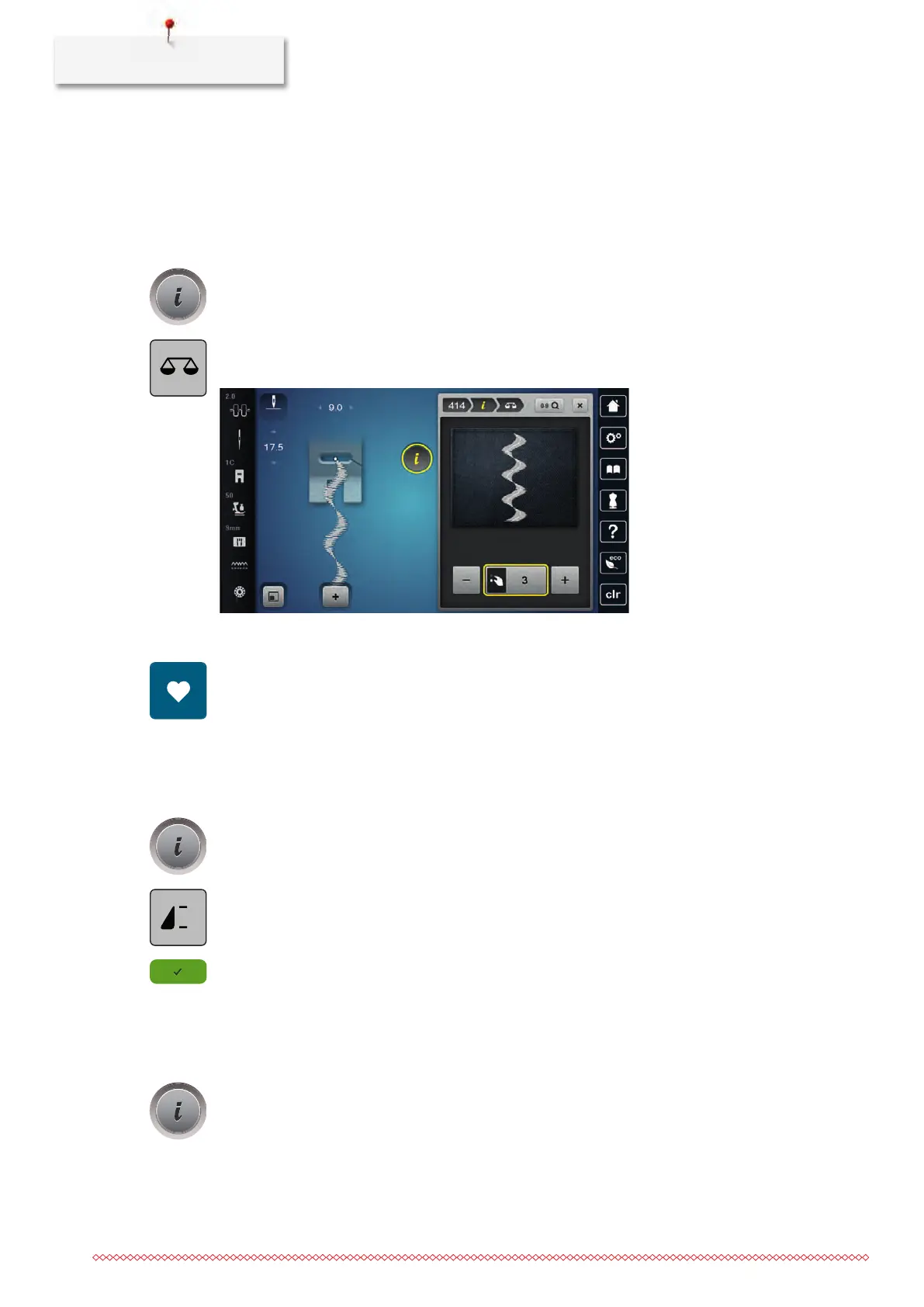 > Altered Balance settings can be saved for each stitch in the «Personal Memory» .