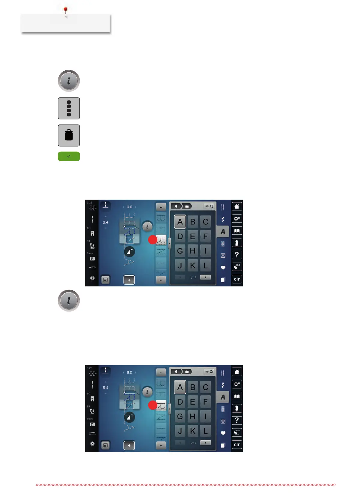 > Tap the desired stitch pattern(1) within the stitch pattern combination.