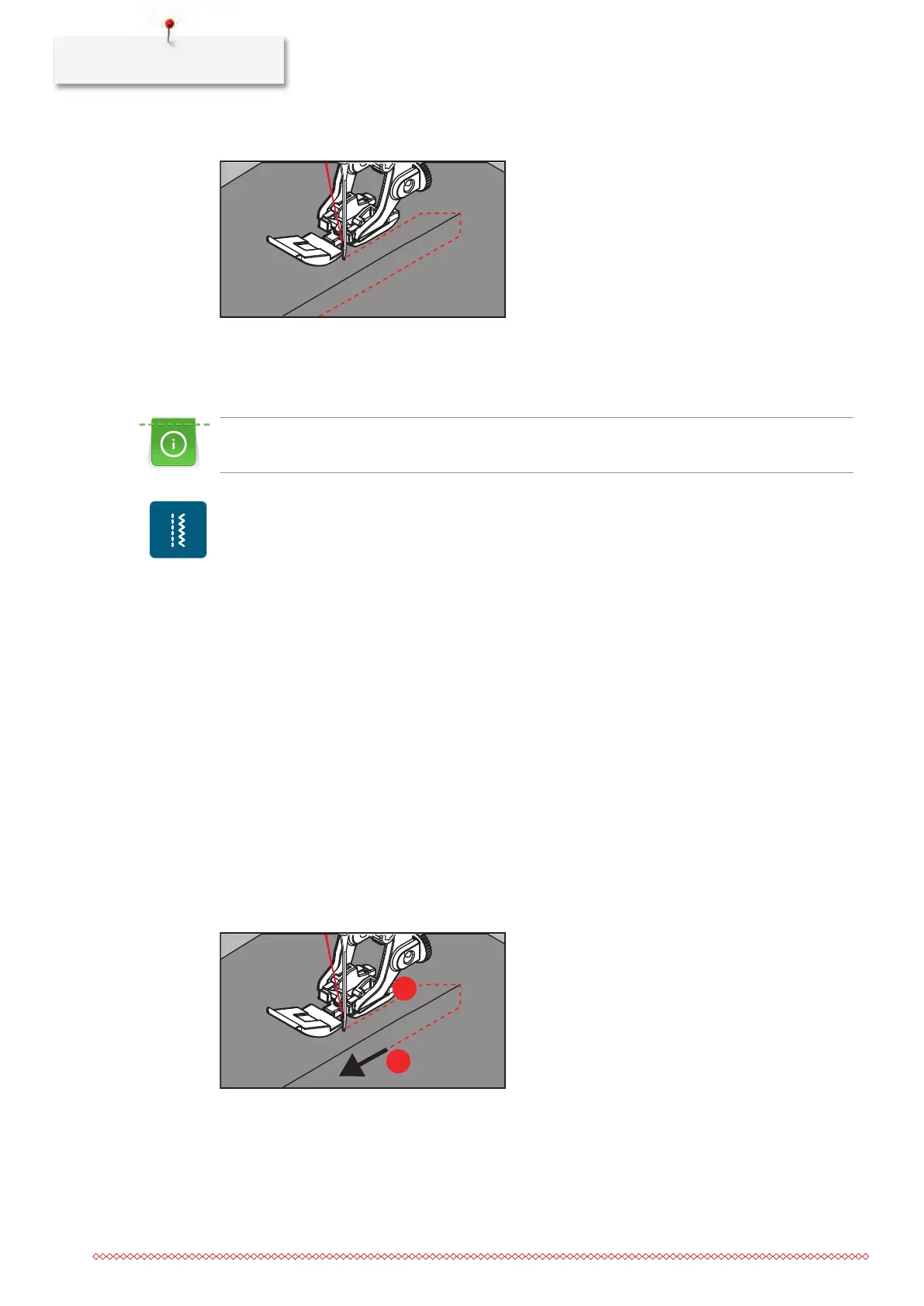 > Lower the presser foot and continue sewing.