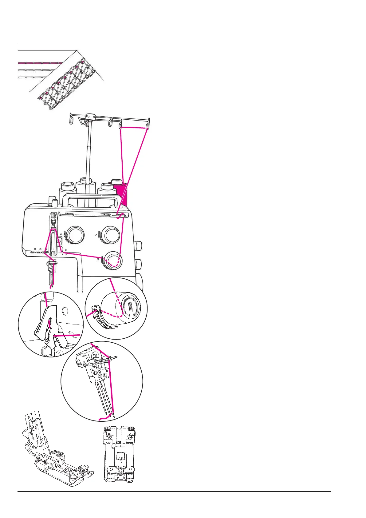 Einfädeln 4 Faden für Cover-Stich einfädeln / Enlage du point enveloppant à 4 ls