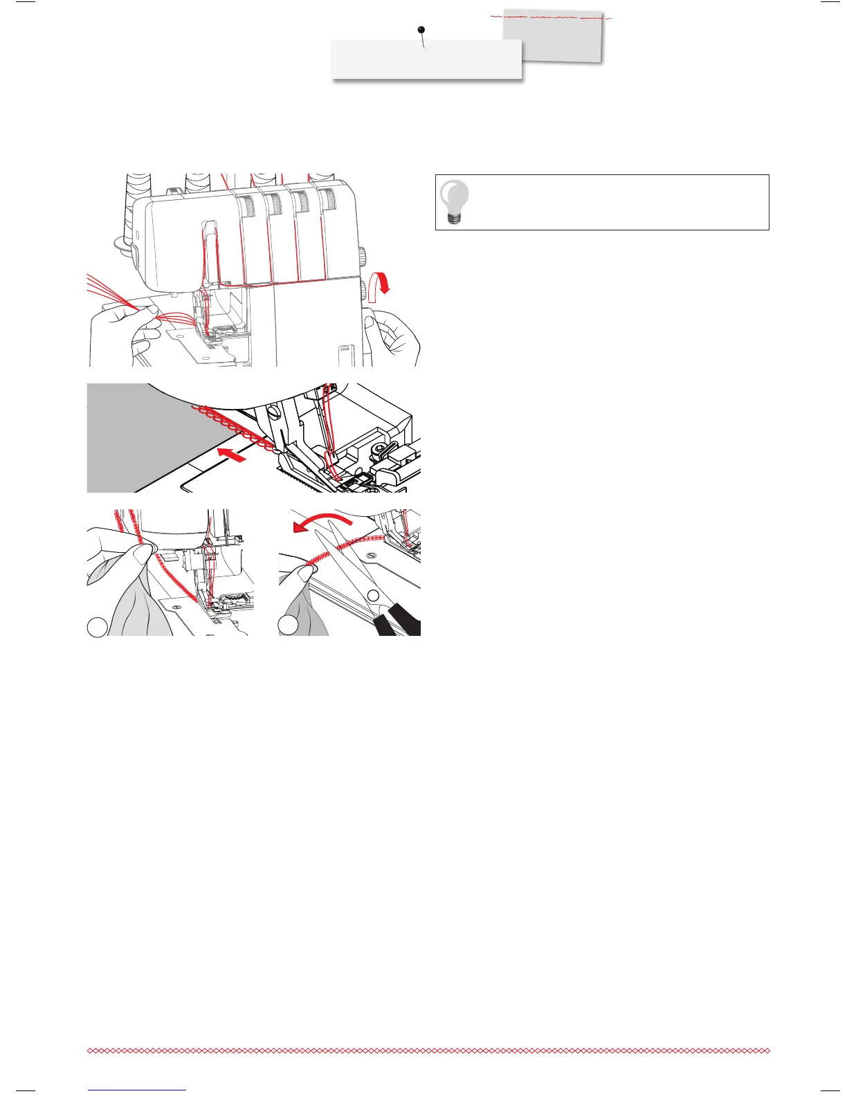 Pull the threads from the back over the thread cutter (1) or cut