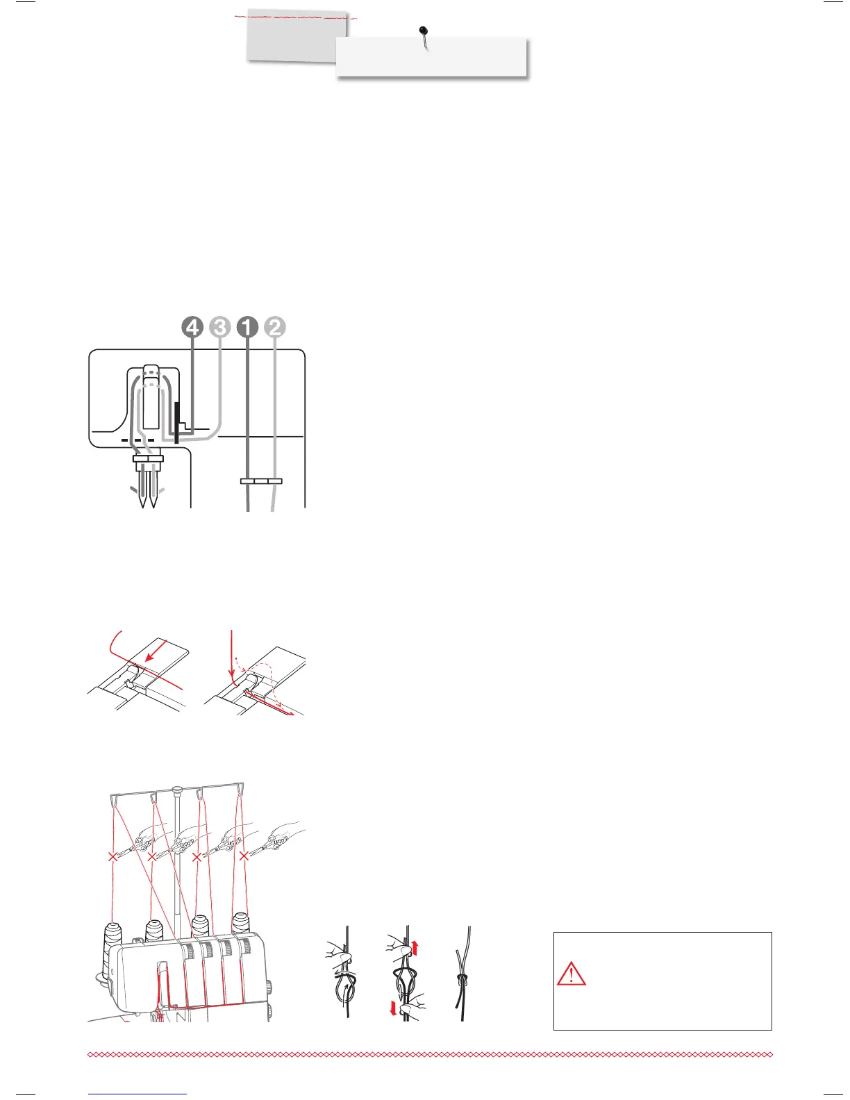 and as indicated on the Threading Chart (color dots 1 – 4) in the machine.