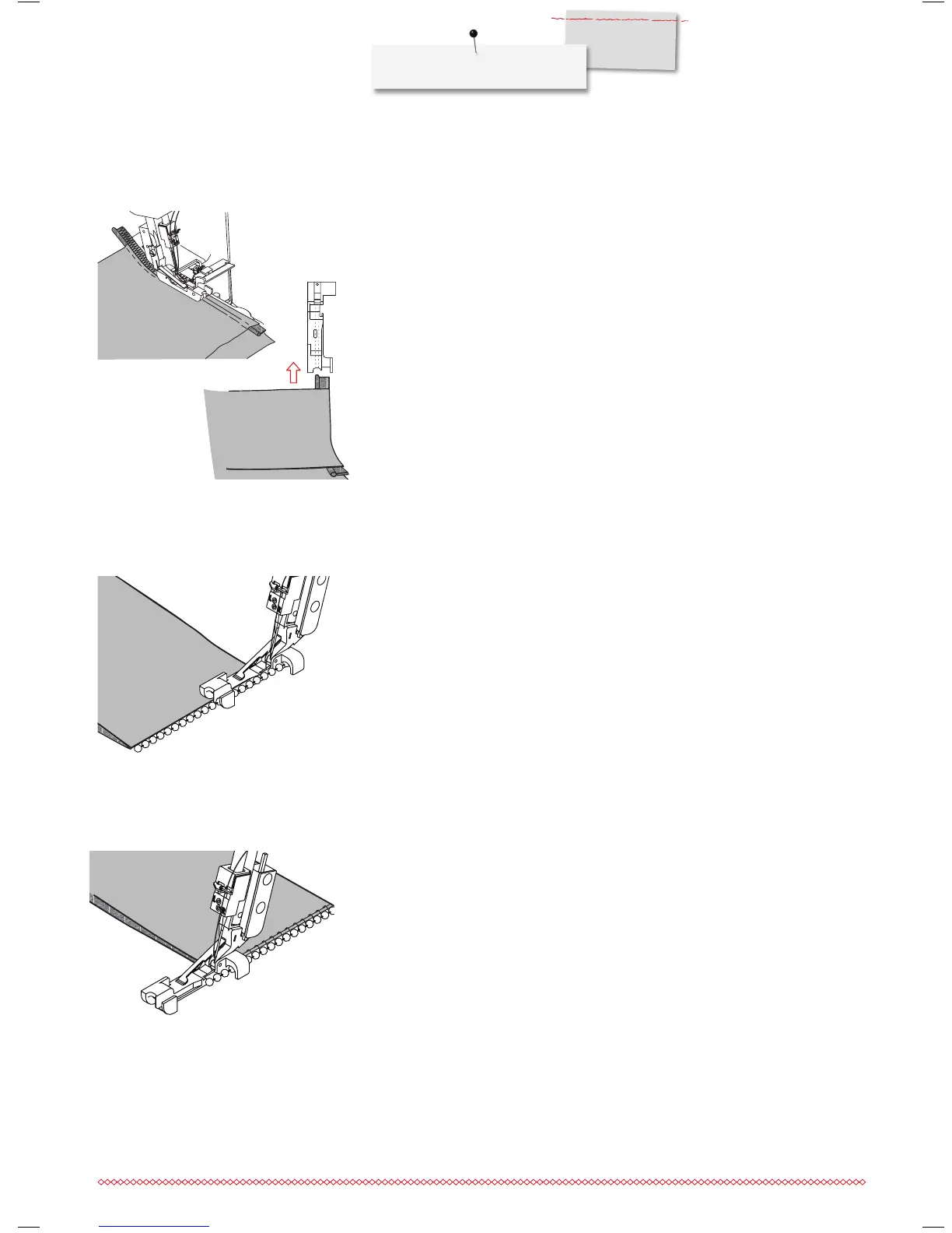 Line up the fabric edge to extend slightly over the foot guide and along the pearls.