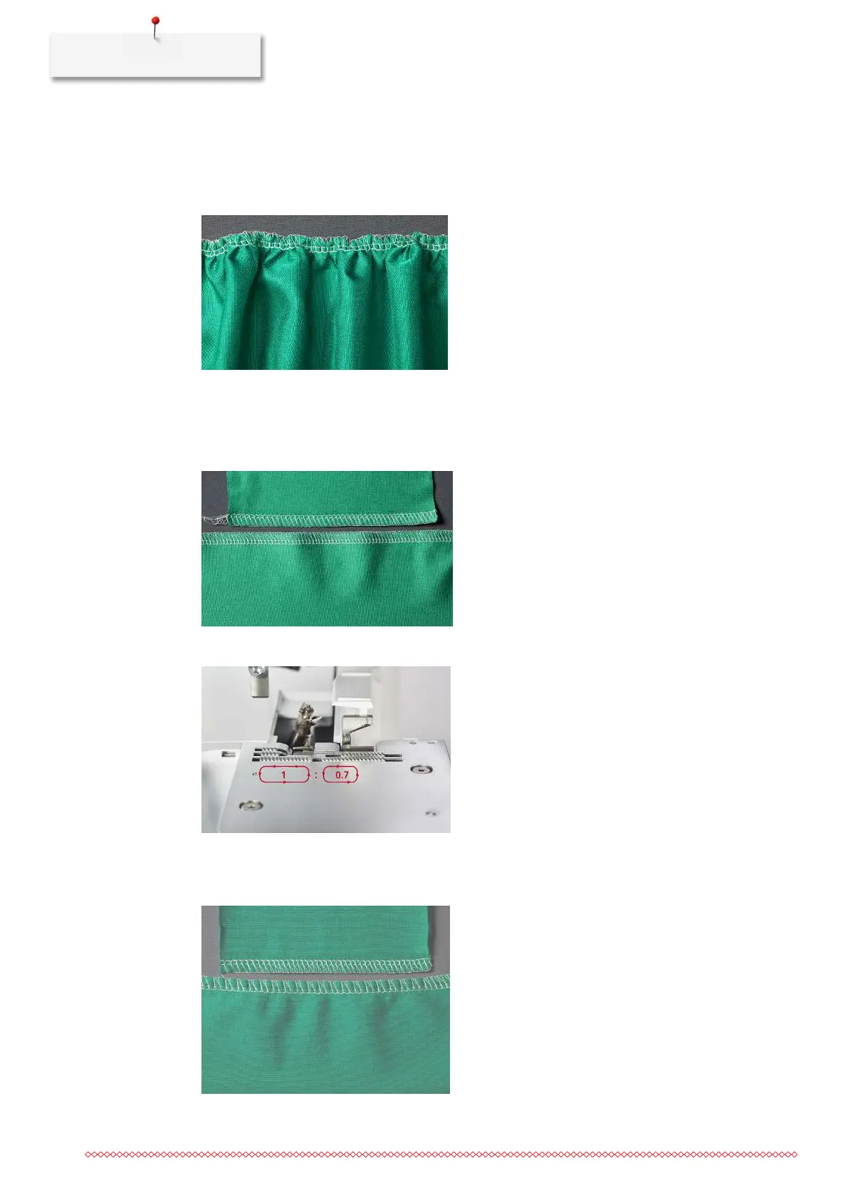 This setting for gathering can also be used to deliberately ruffle the material and helps to reduce seam