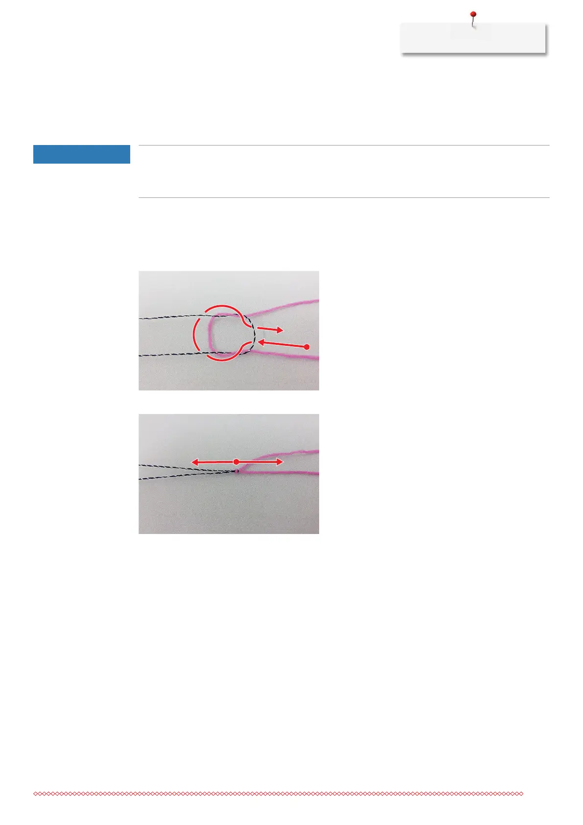 > Insert the thick thread end from below into the thin thread loop.