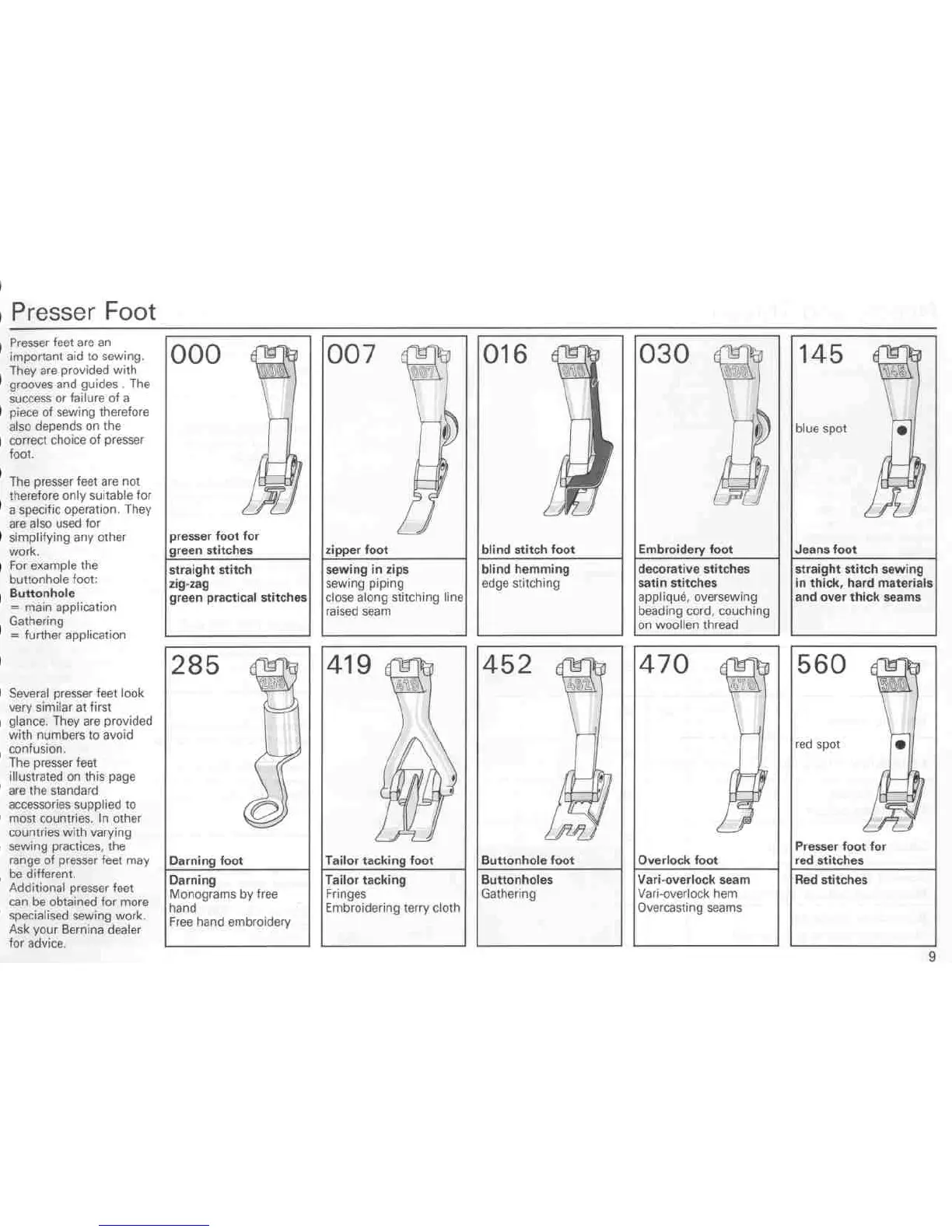 Bernina Record 930 Electronic - Presser Foot Guide; Understanding Presser Foot Numbers; Common Presser Feet Applications