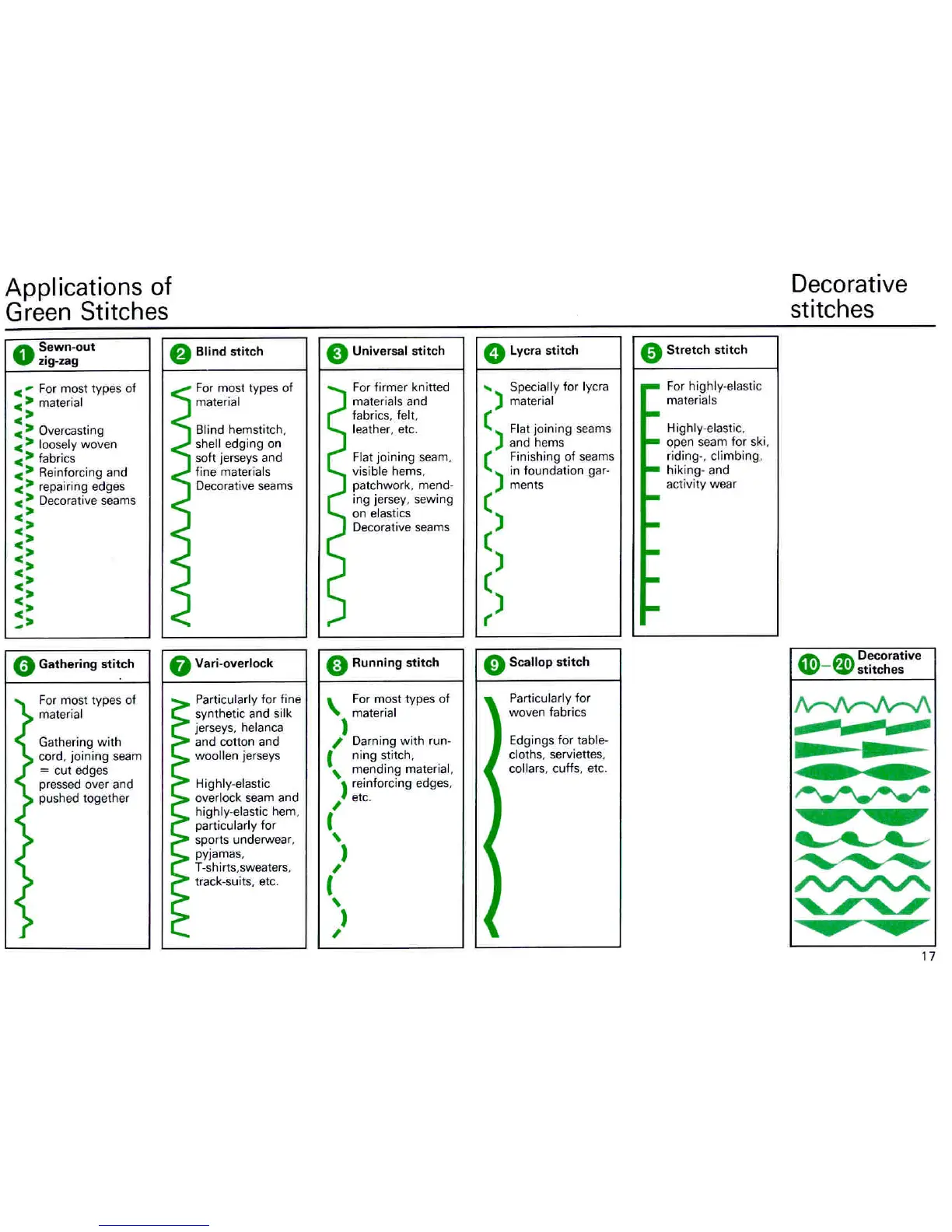 Bernina Record 930 Electronic - Applications of Green Stitches; Decorative Stitches
