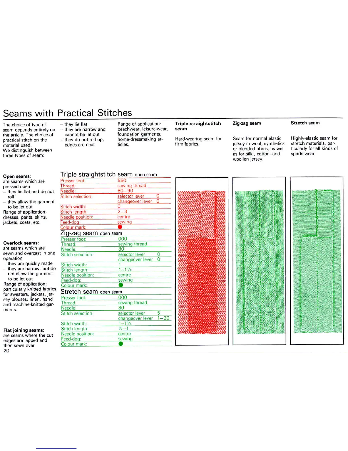 Bernina Record 930 Electronic - Seams with Practical Stitches; Triple Straightstitch Seam; Zig-zag Seam; Stretch Seam