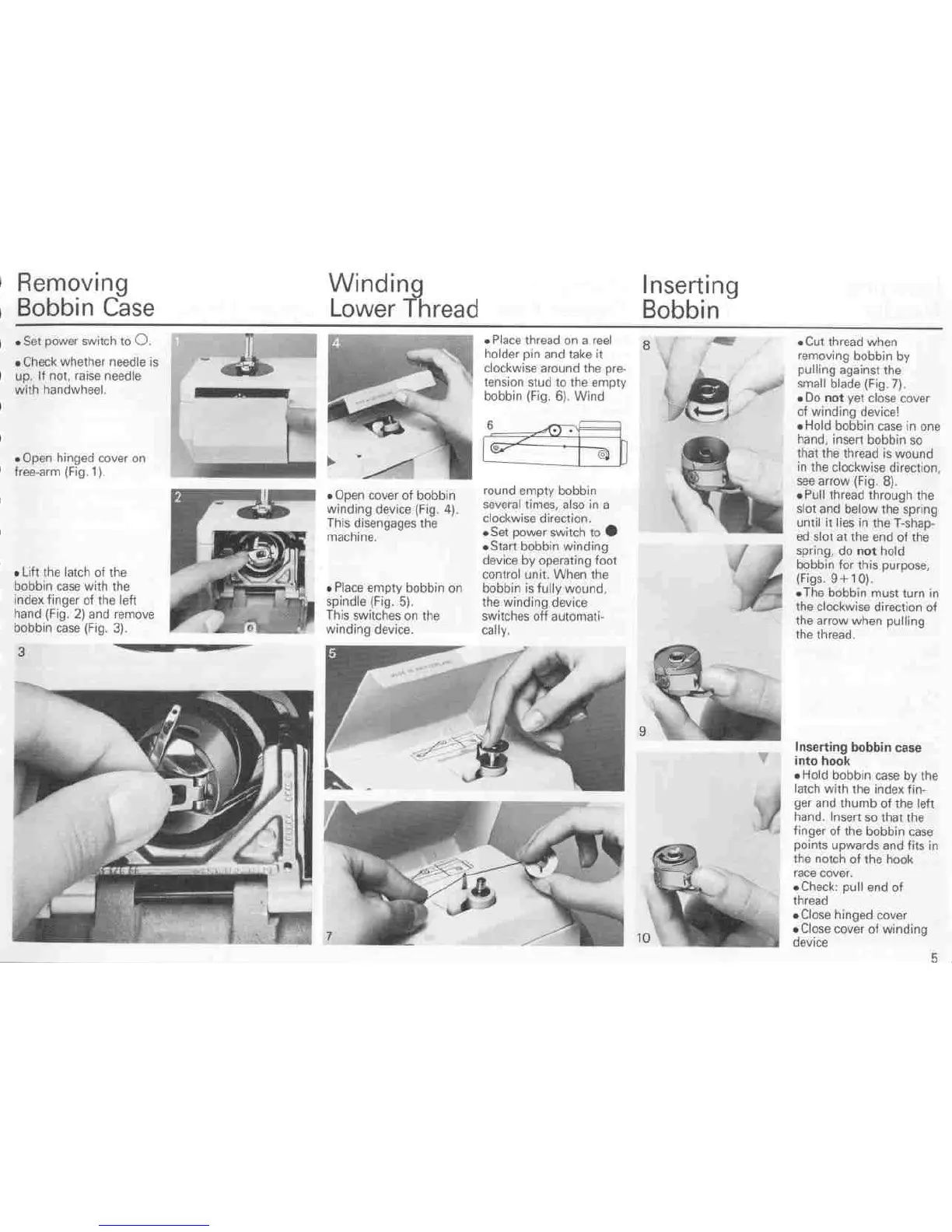 Bernina Record 930 Electronic - Bobbin Handling; Removing the Bobbin Case; Winding the Bobbin Thread; Inserting the Bobbin into the Hook