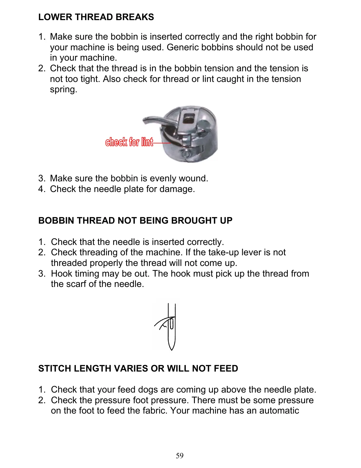 1. Make sure the bobbin is inserted correctly and the right bobbin for