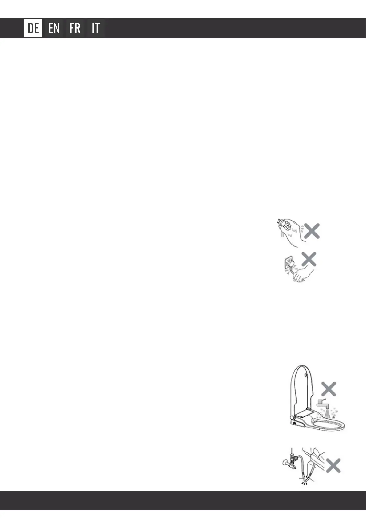 Produkt und den Netzstecker spritzen. Andernfalls besteht die Gefahr eines Stromschlags.