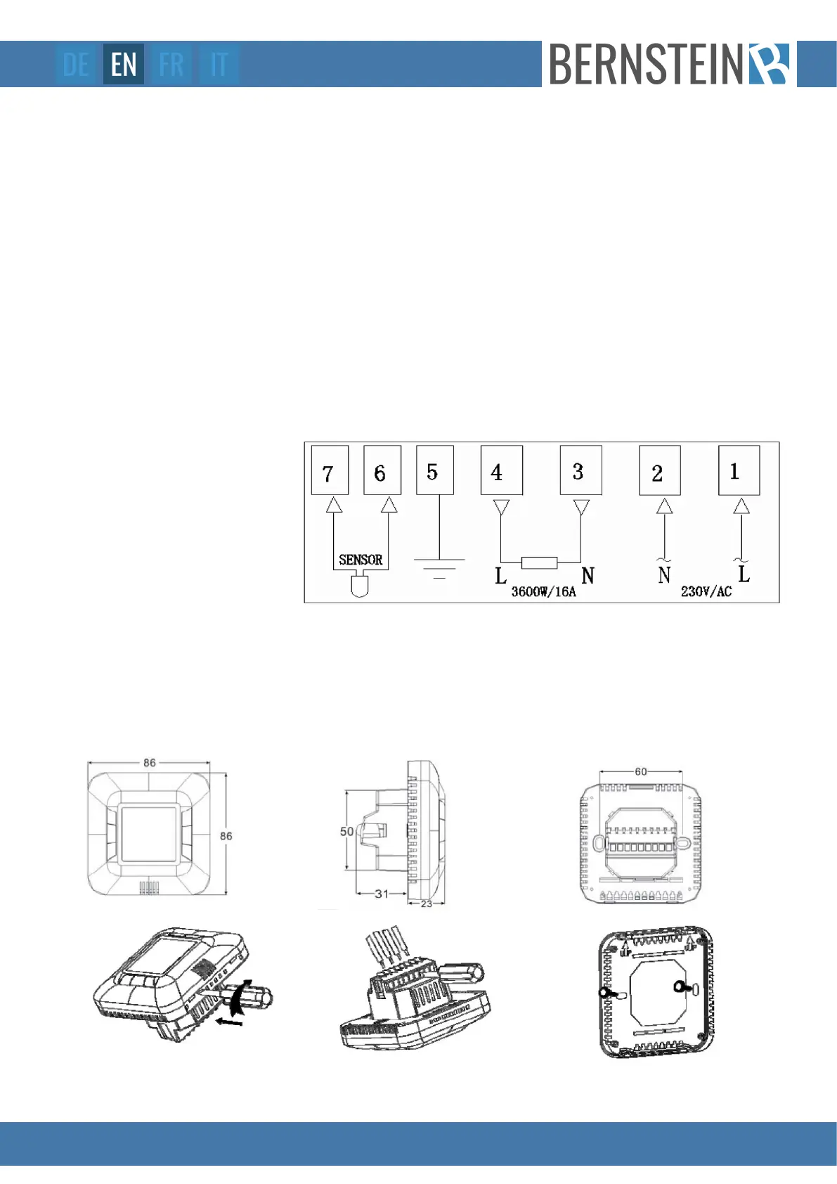 The enclosed 3 meter sensor cable can be extended up to 50m by means of a separate cable. The installation pipe must not contain any other