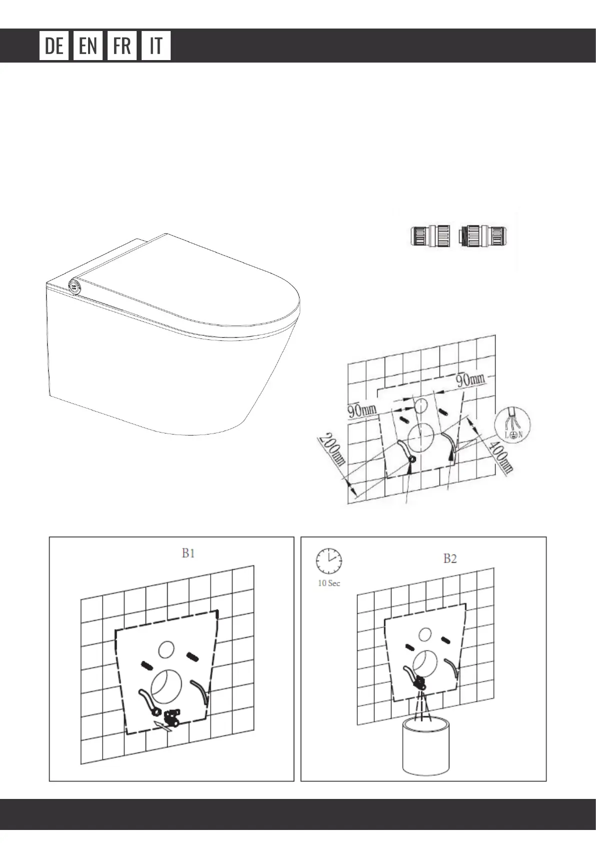 Le raccordement à l‘eau et l‘alimentation électrique doivent se trouver dans la zone d‘installation des WC.