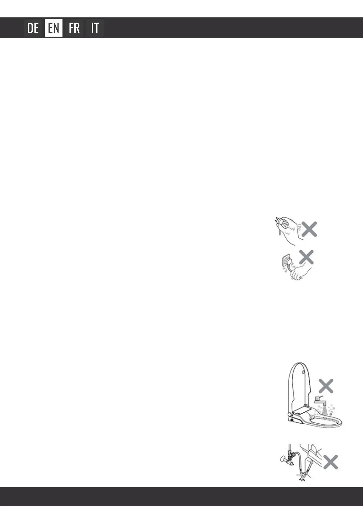 1. Do not plug in or unplug the mains plug with wet hands.