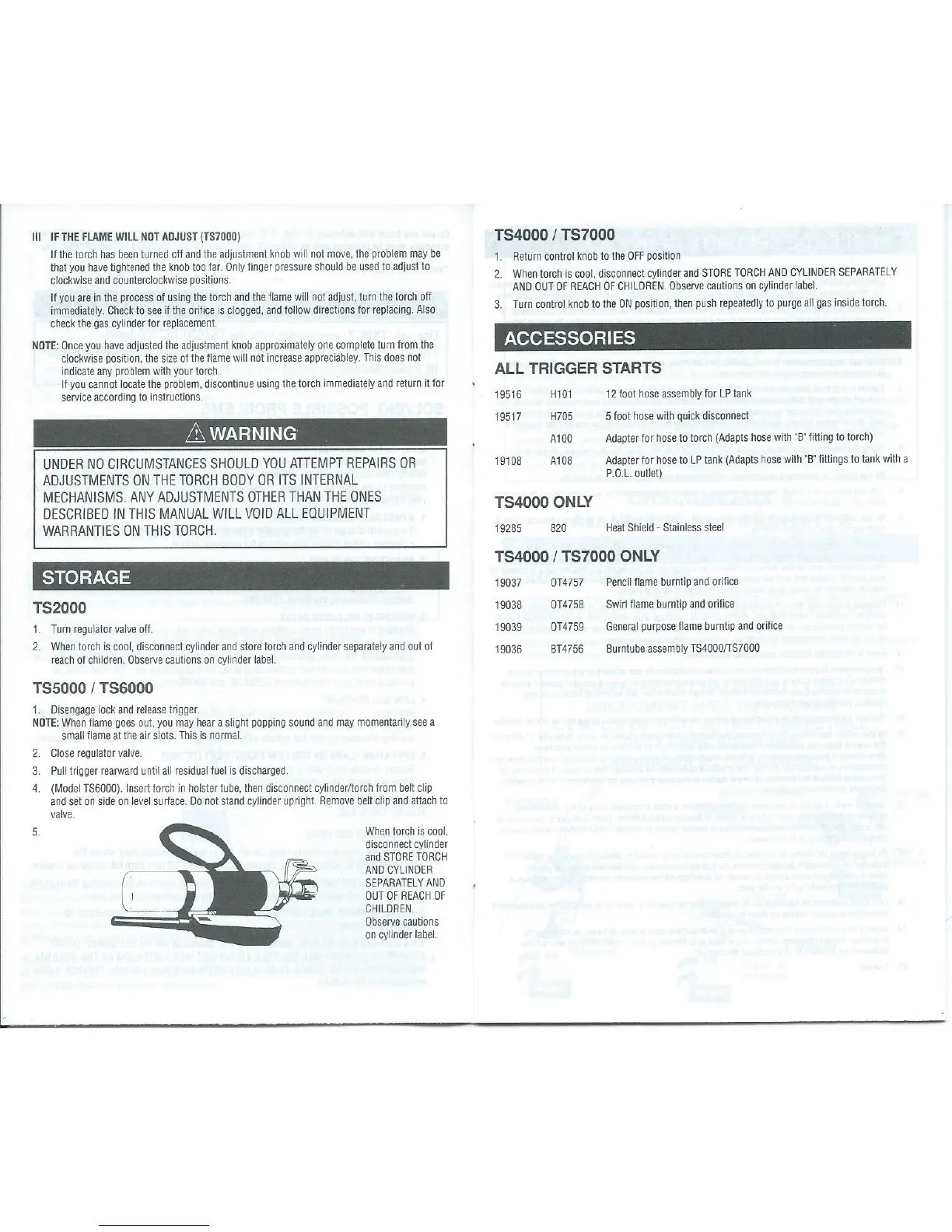Bernzomatic TS2000K - Storage; If the Flame will Not Adjust