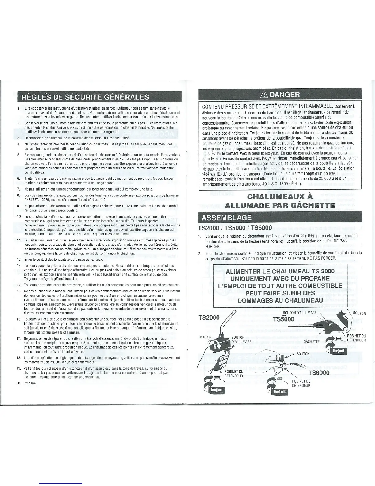 Bernzomatic TS2000K - General Safety Rules; Comprehensive Safety Guidelines; Danger: Pressurized Propane; Propane Hazard Warning