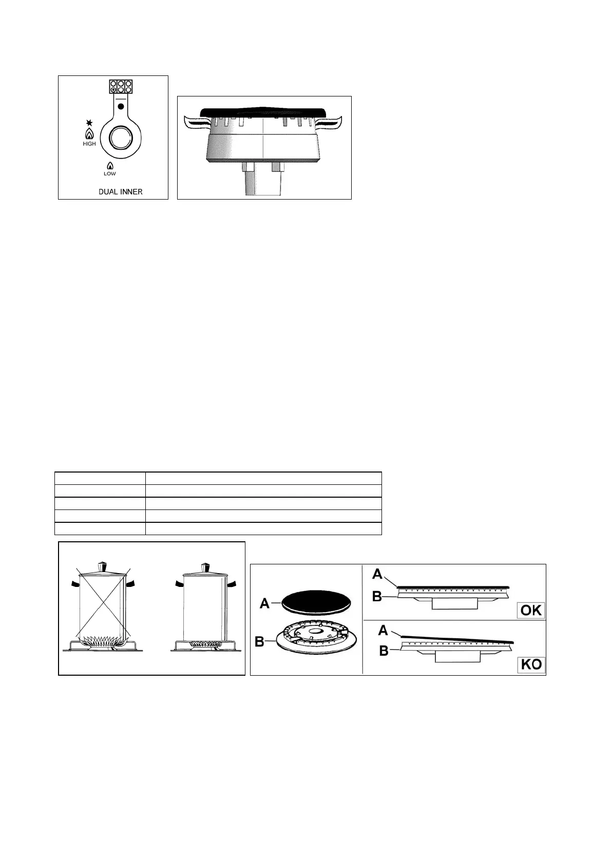 Note: Dual burner is composed by two burner (inside and outside); each one operates under the relative gas valve