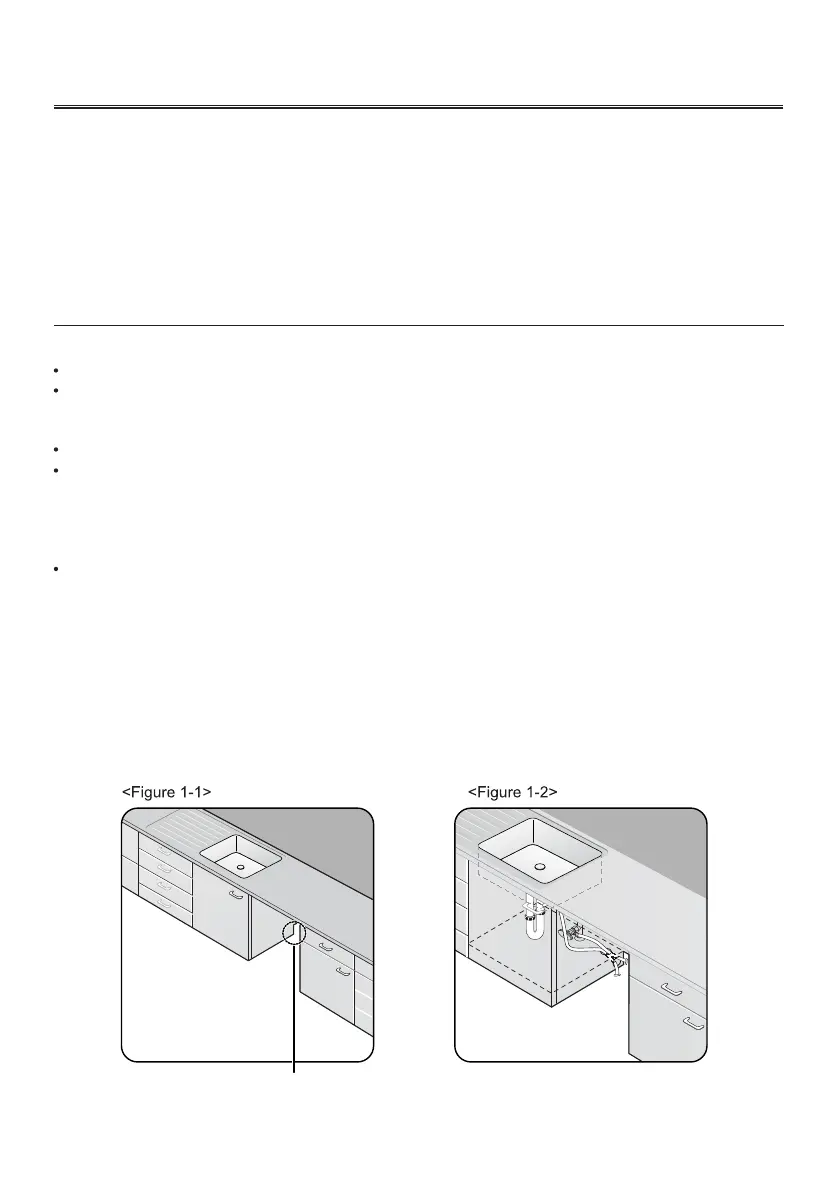 The following criteria are important to ensure the best location for the dishwasher: