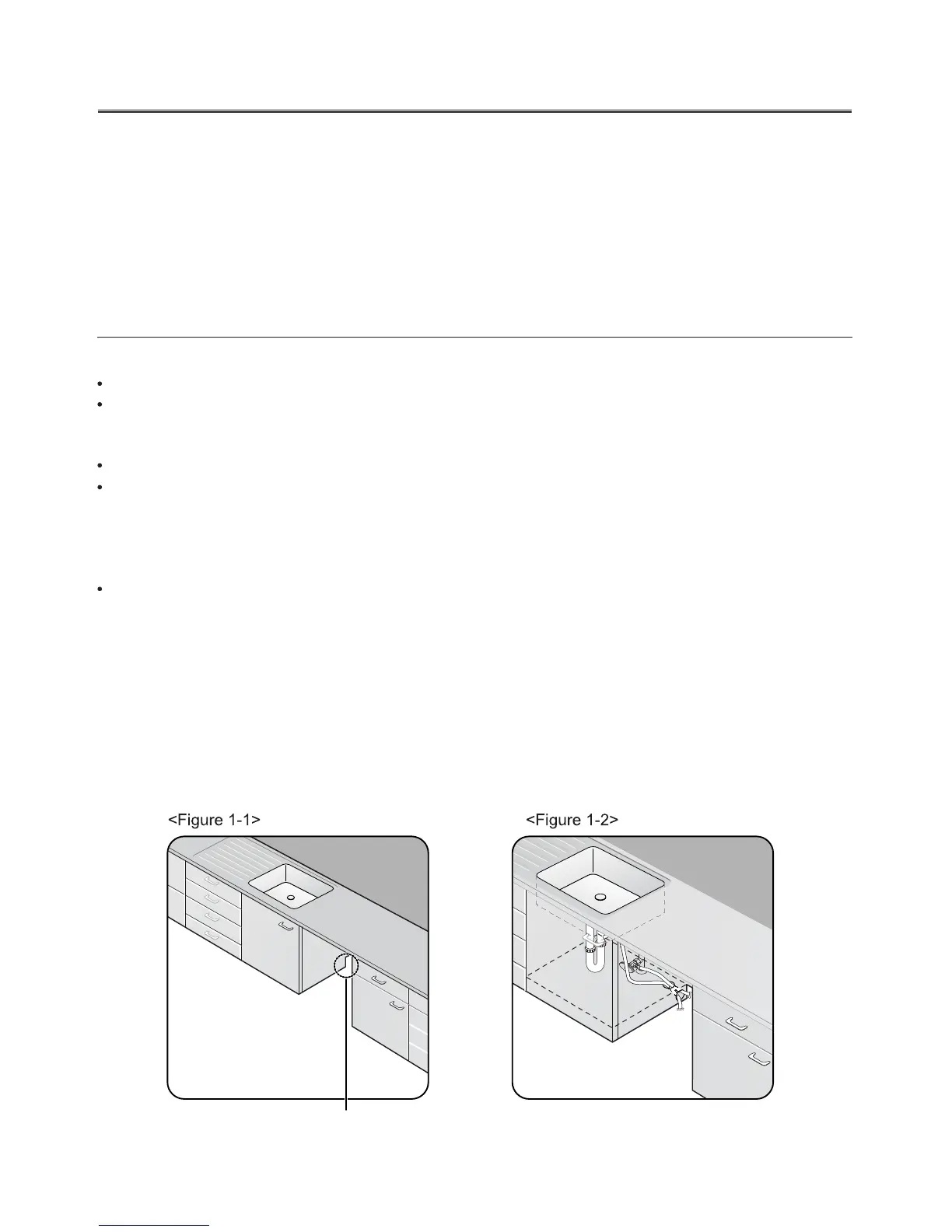 The following criteria are important to ensure the best location for the dishwasher: