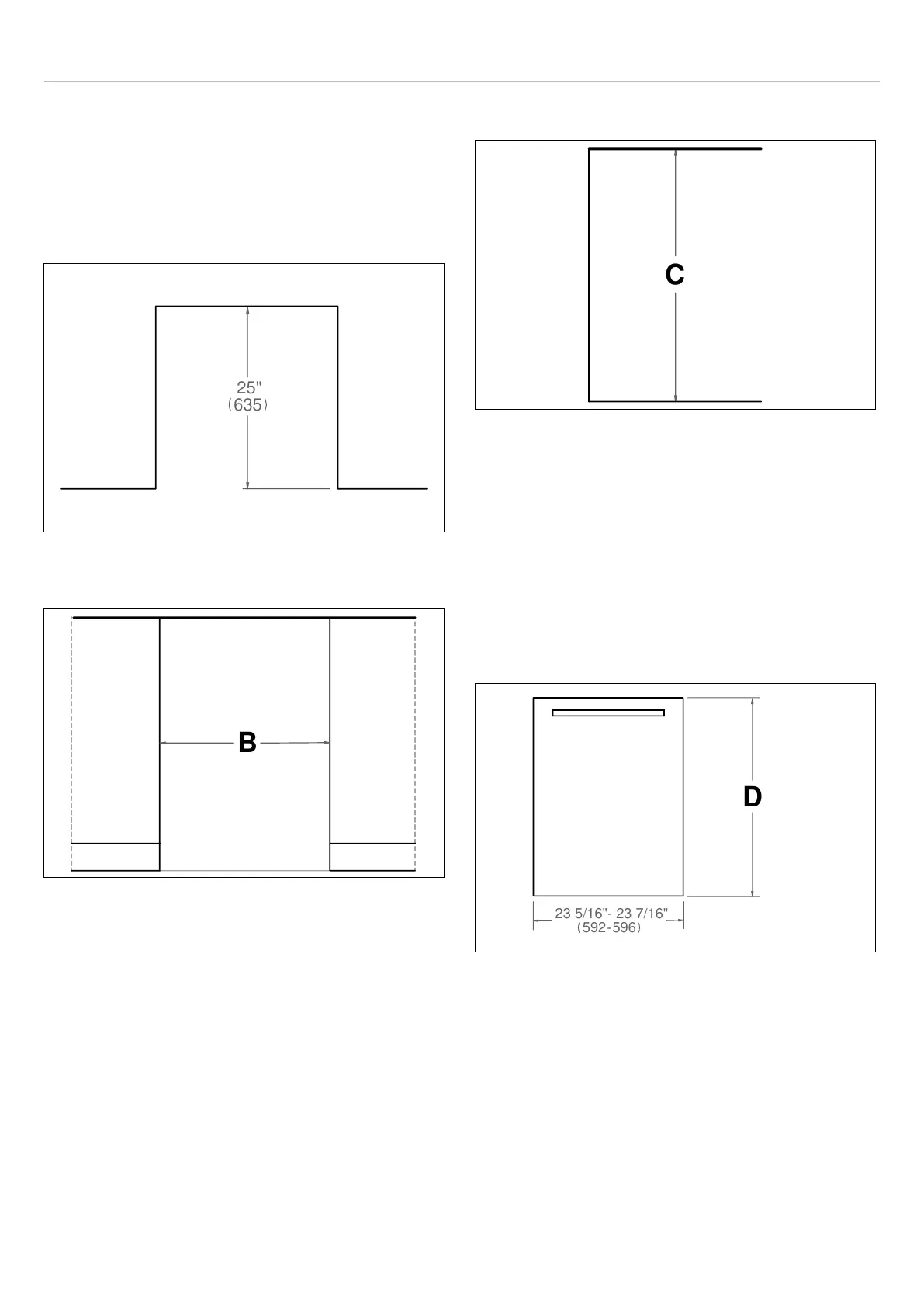 • B 23 5/8″ (600mm)* or 24″ (610mm)**