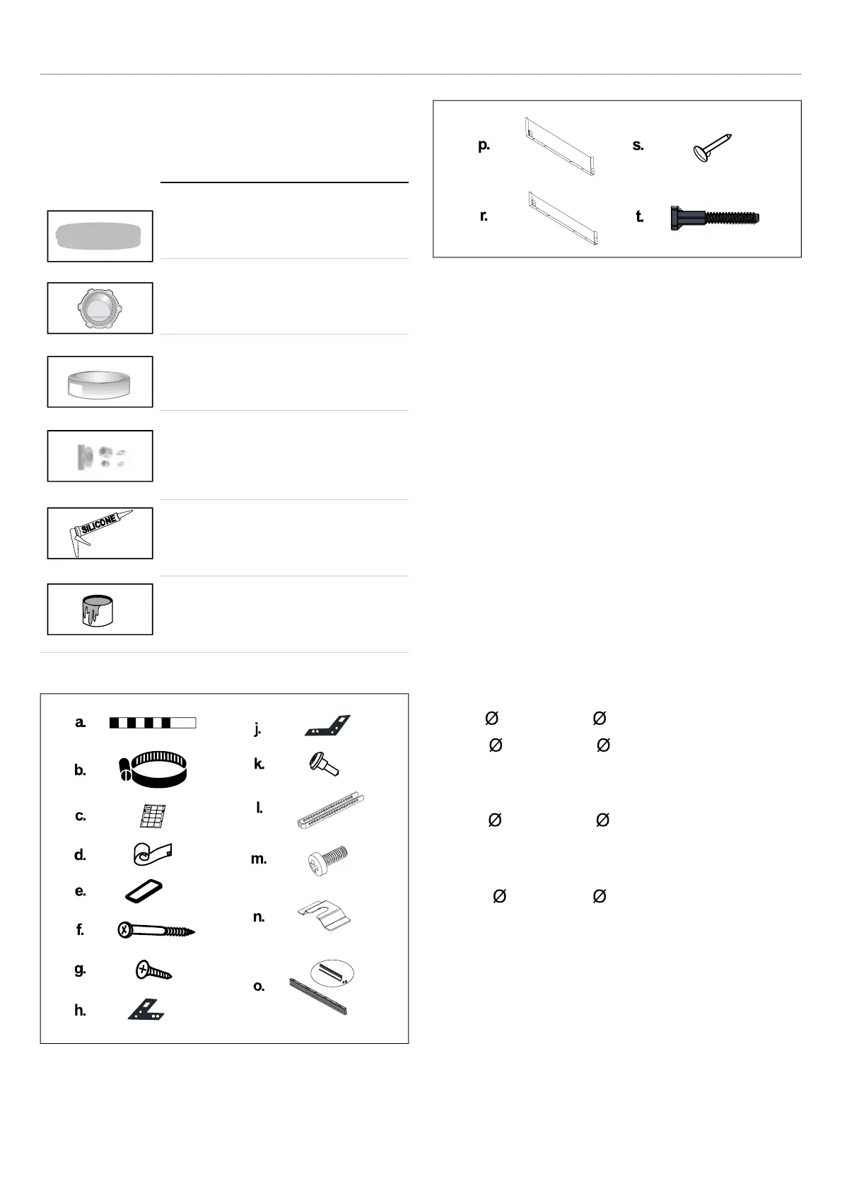 • p. Pièce métallique de plinthe réglable (130 mm) selon