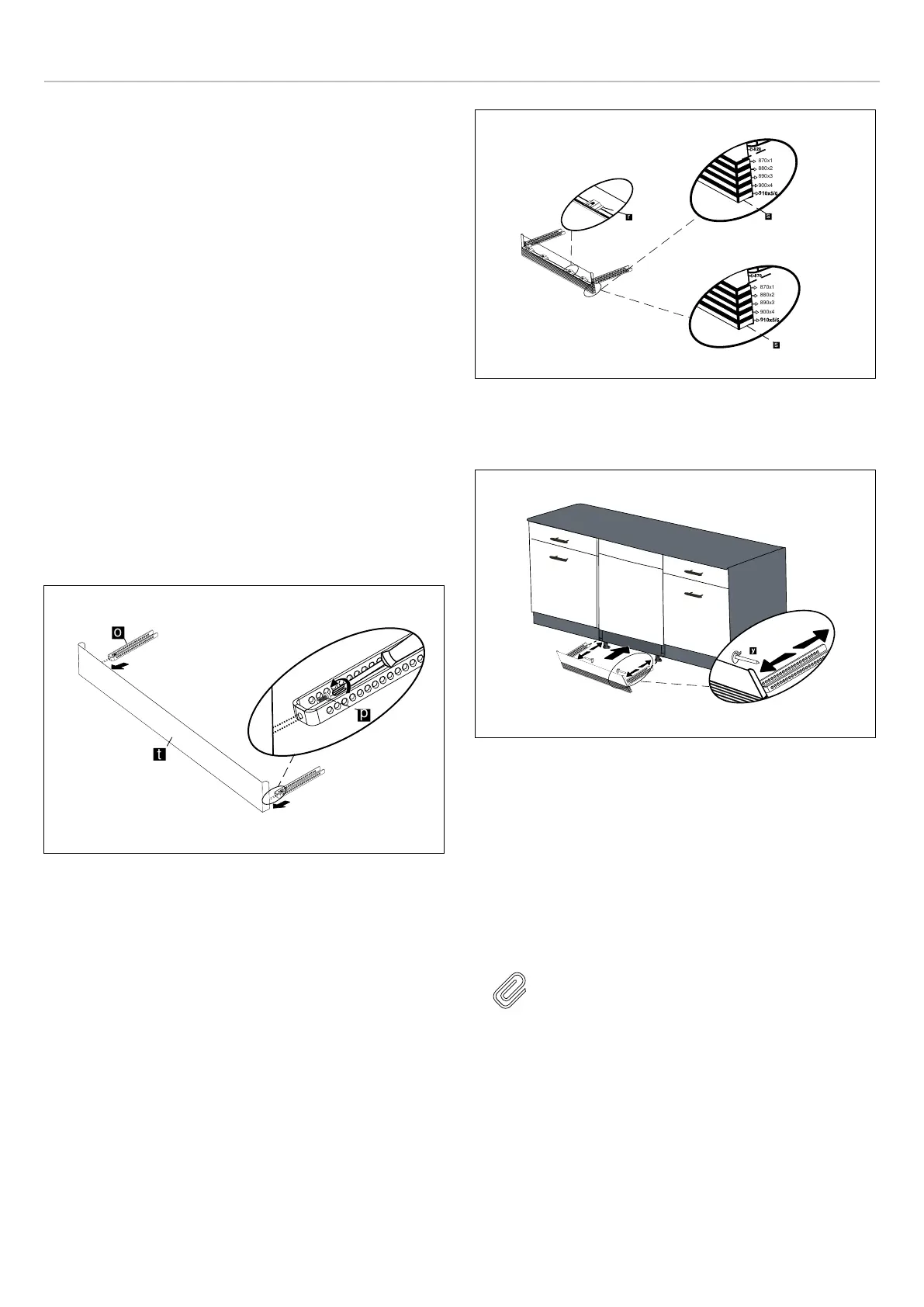 4) Finally, toe kick brackets (o) are attached to the gaps