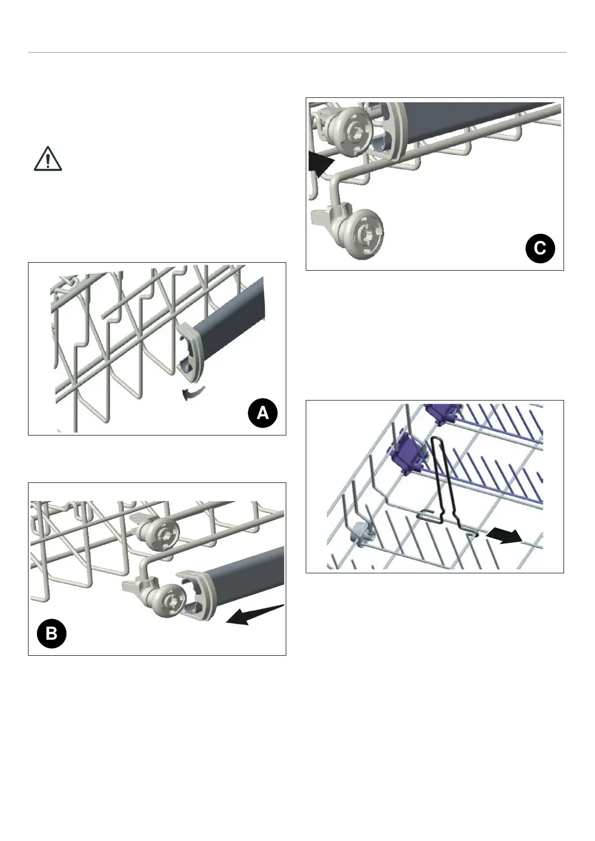 • Pull out the rack completely, B.