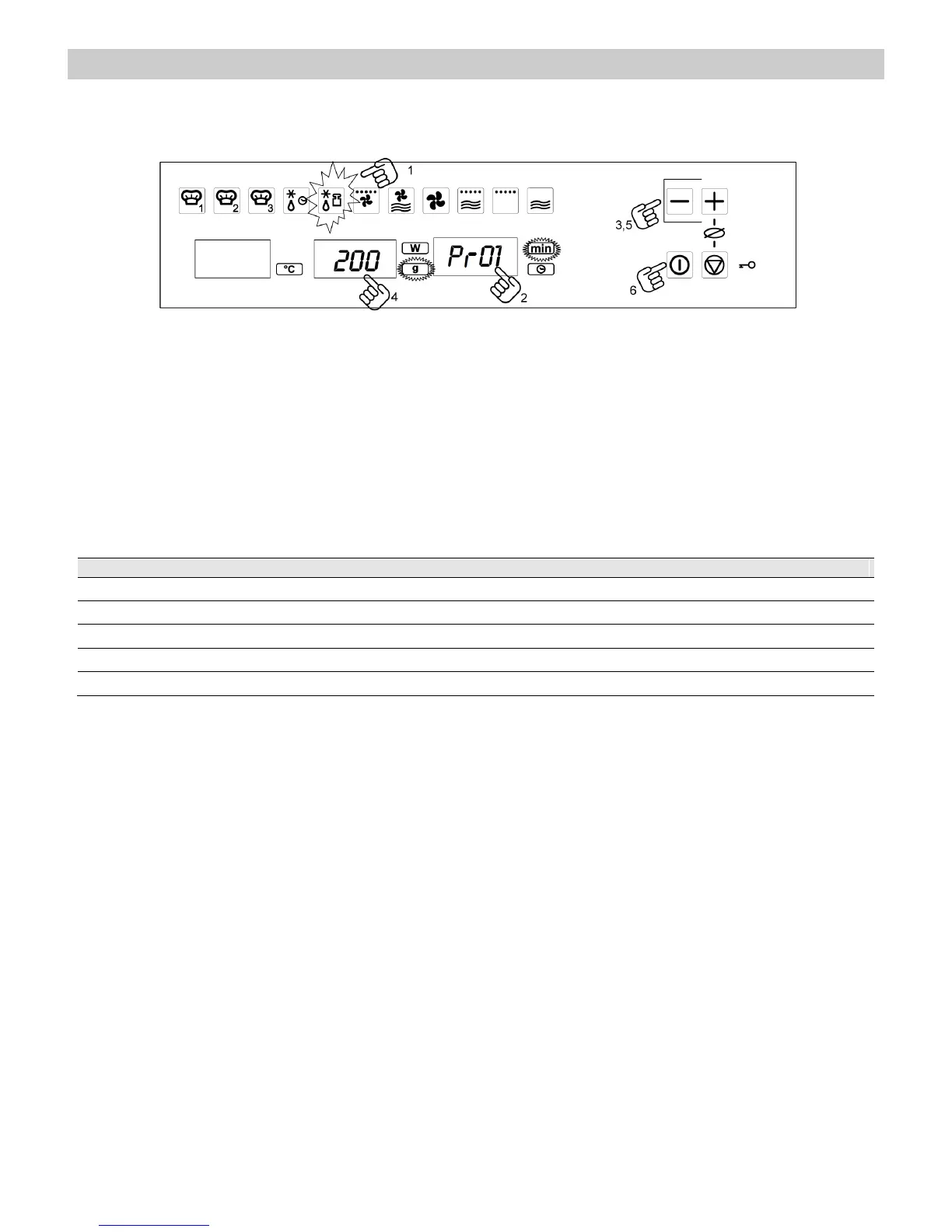 The following table shows the defrosting by weight function programmes, indicating weight intervals, and