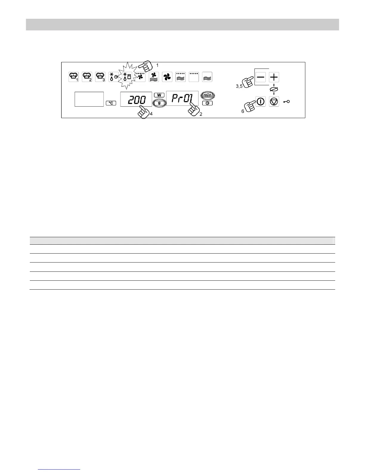 Die folgende Tabelle zeigt die Programme der Funktion Auftauen nach Gewicht, unter Angabe der