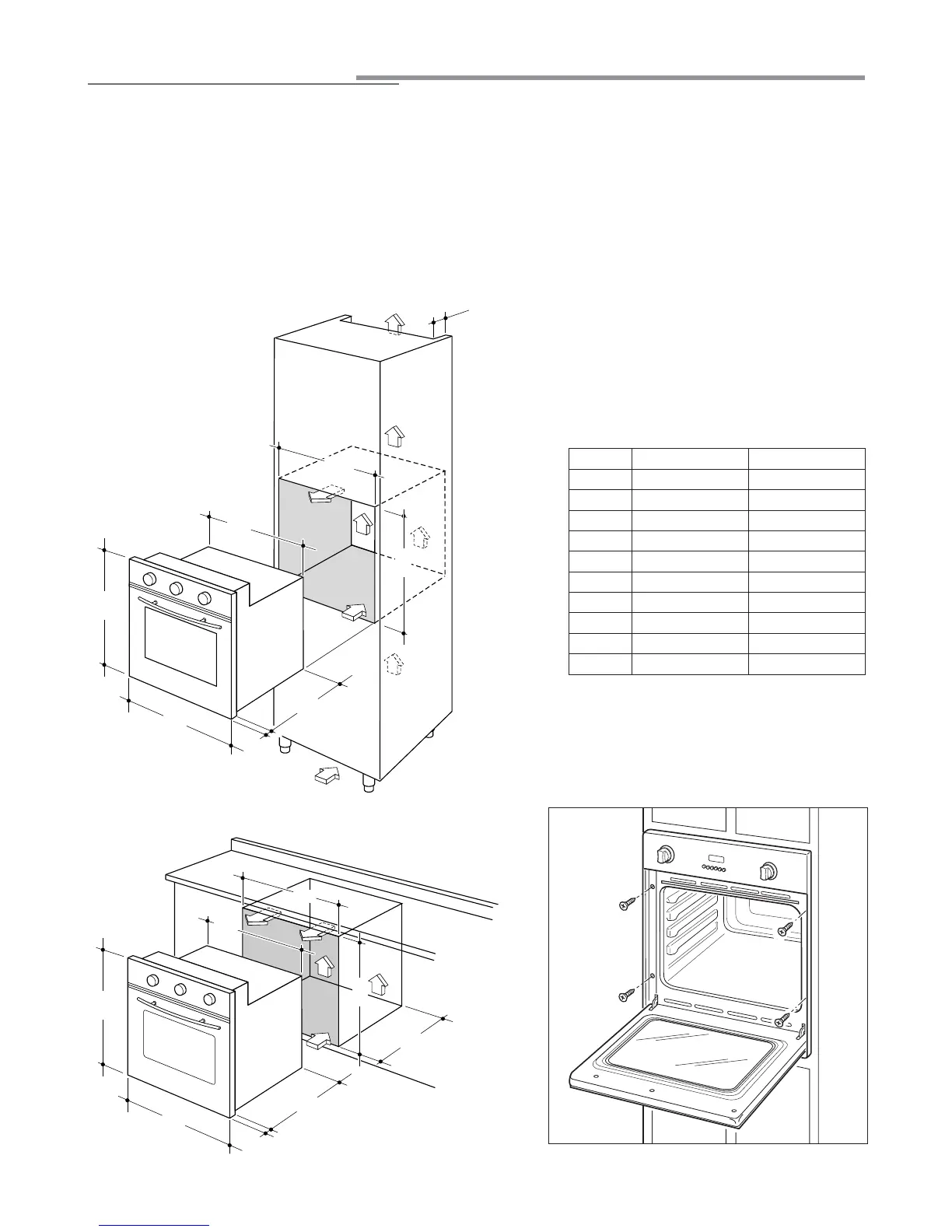 The oven should then be secured by 4 screws fitted into the holes provided at the