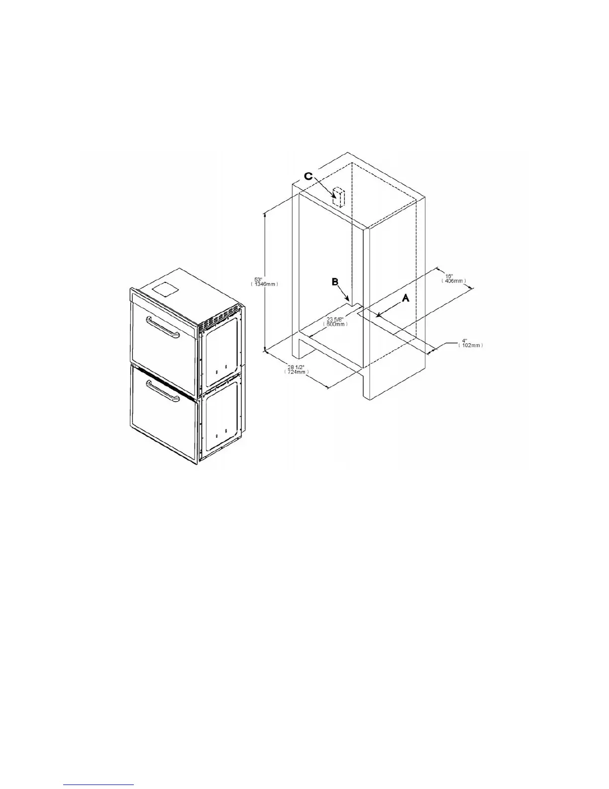B Cut-out for power cord min. 1" x 1” (2.54 x 2.54 cm.)
