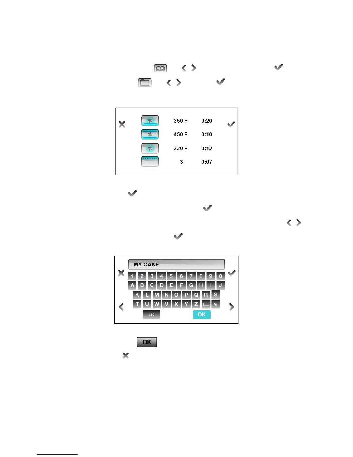 Enter a name for this cooking sequence - scroll through the keyboard with