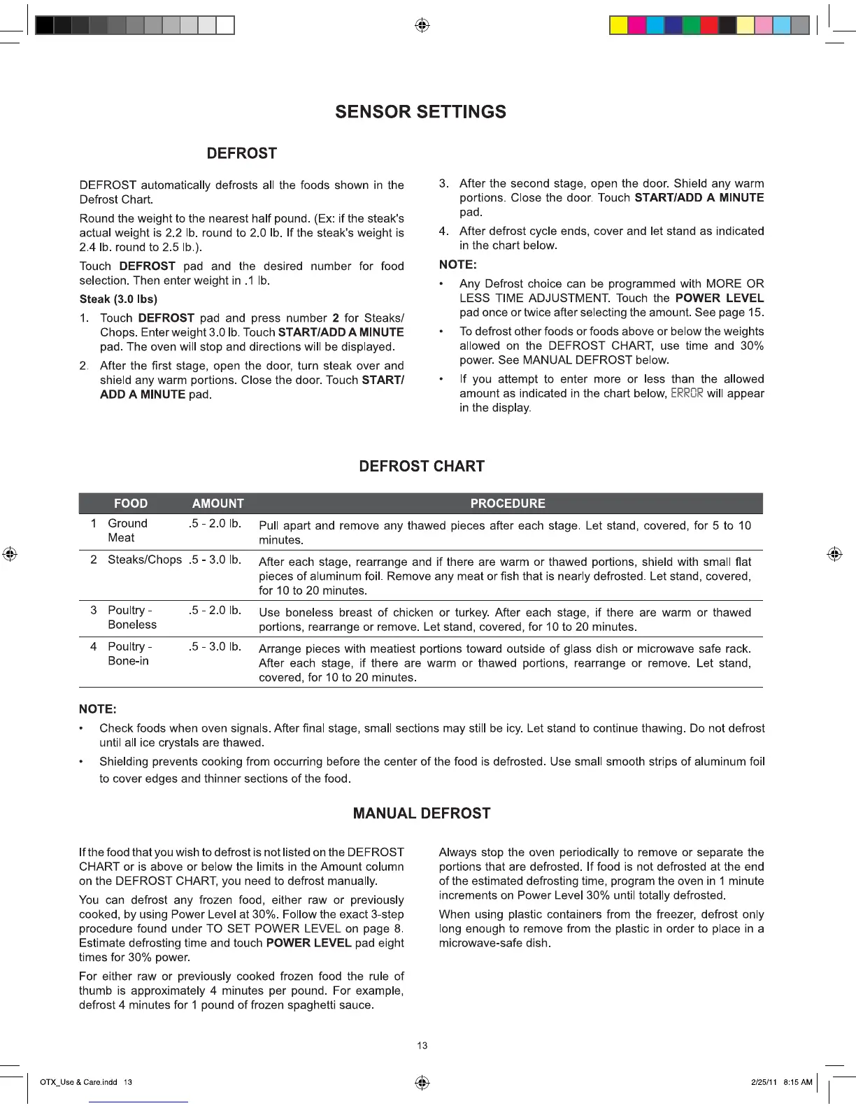 Bertazzoni KO 30 PRO X - Sensor Settings: Reheat; Reheat Chart