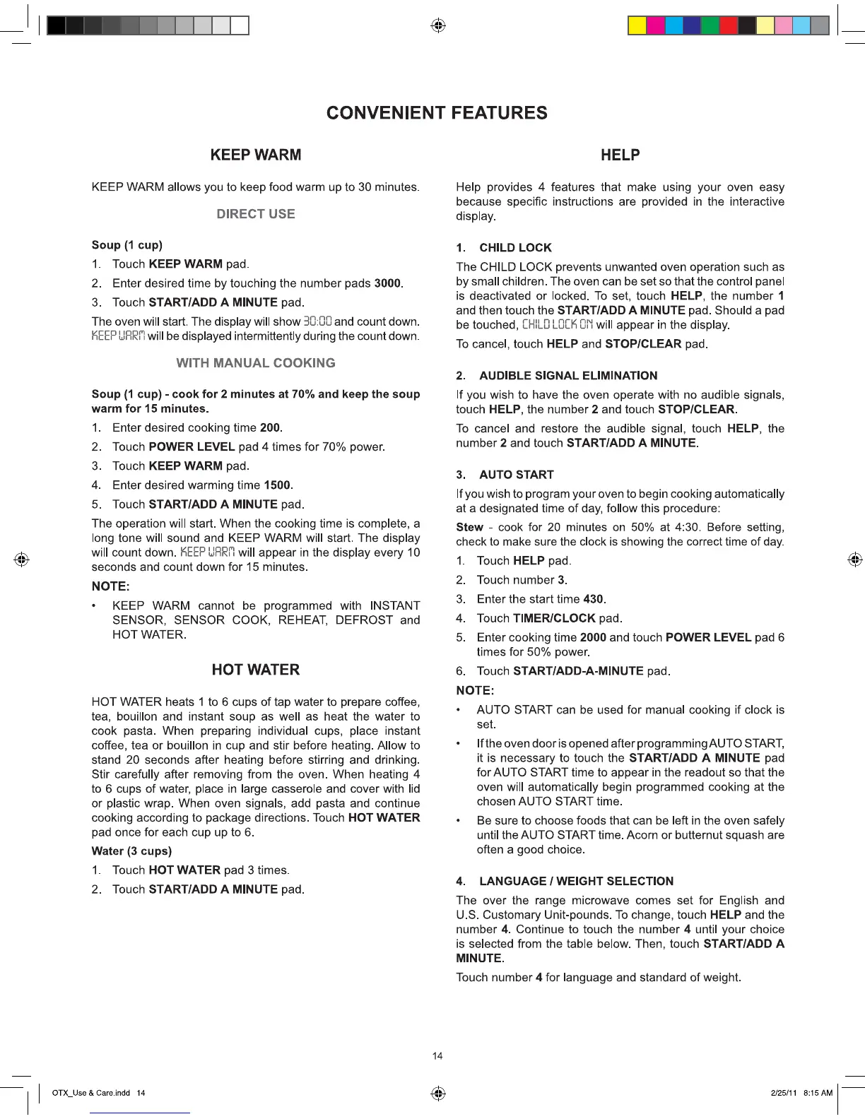 Bertazzoni KO 30 PRO X - Sensor Settings: Defrost; Defrost Chart; Manual Defrost