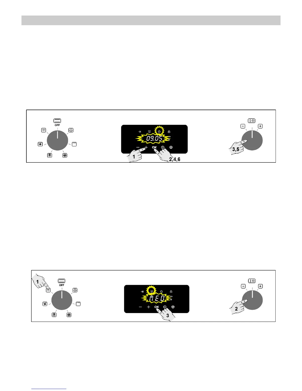 Before using the oven, adjust the clock through the procedure described below but starting on Step 3.