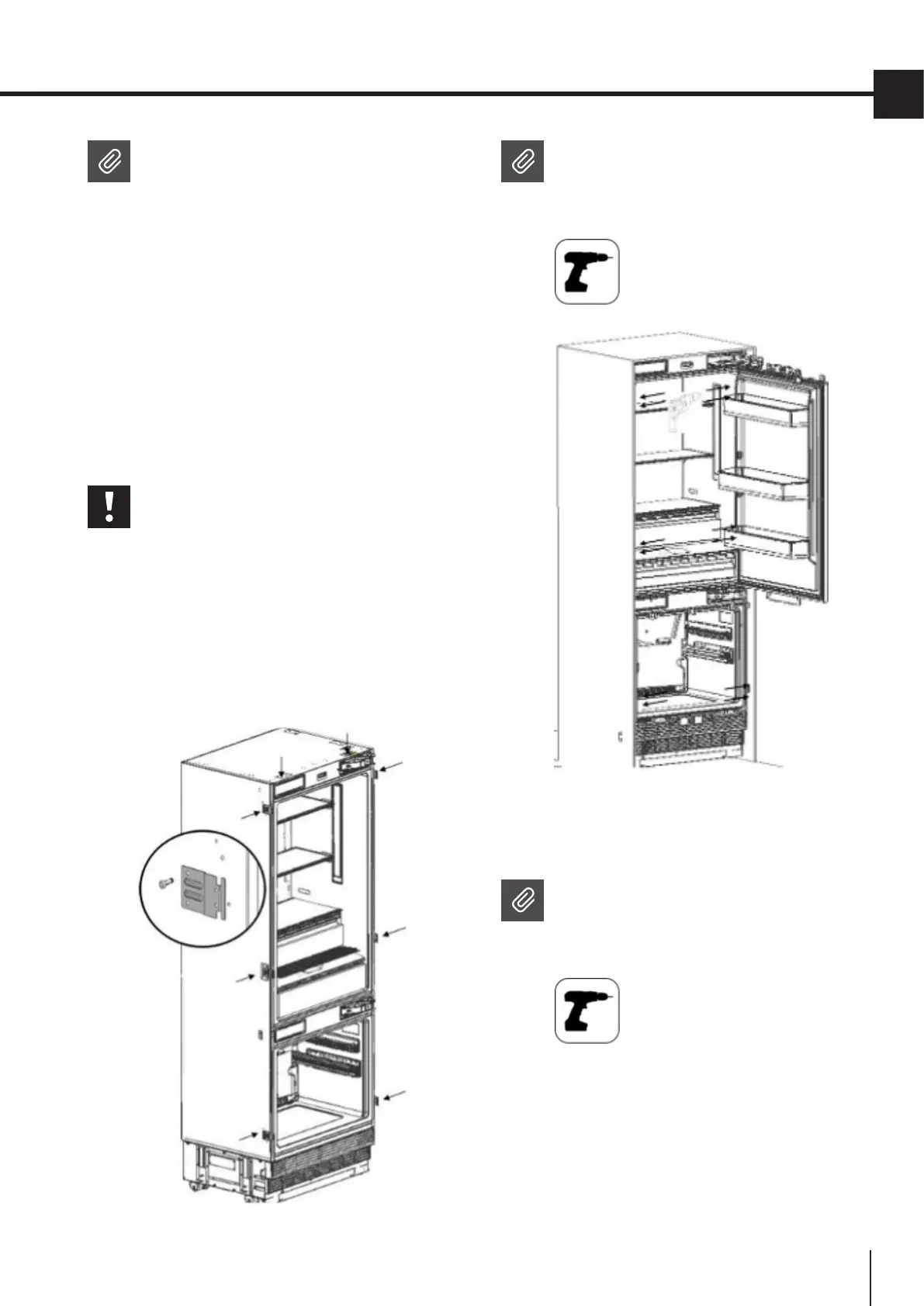 • Attach the upper bracket to the cabinet using 4
