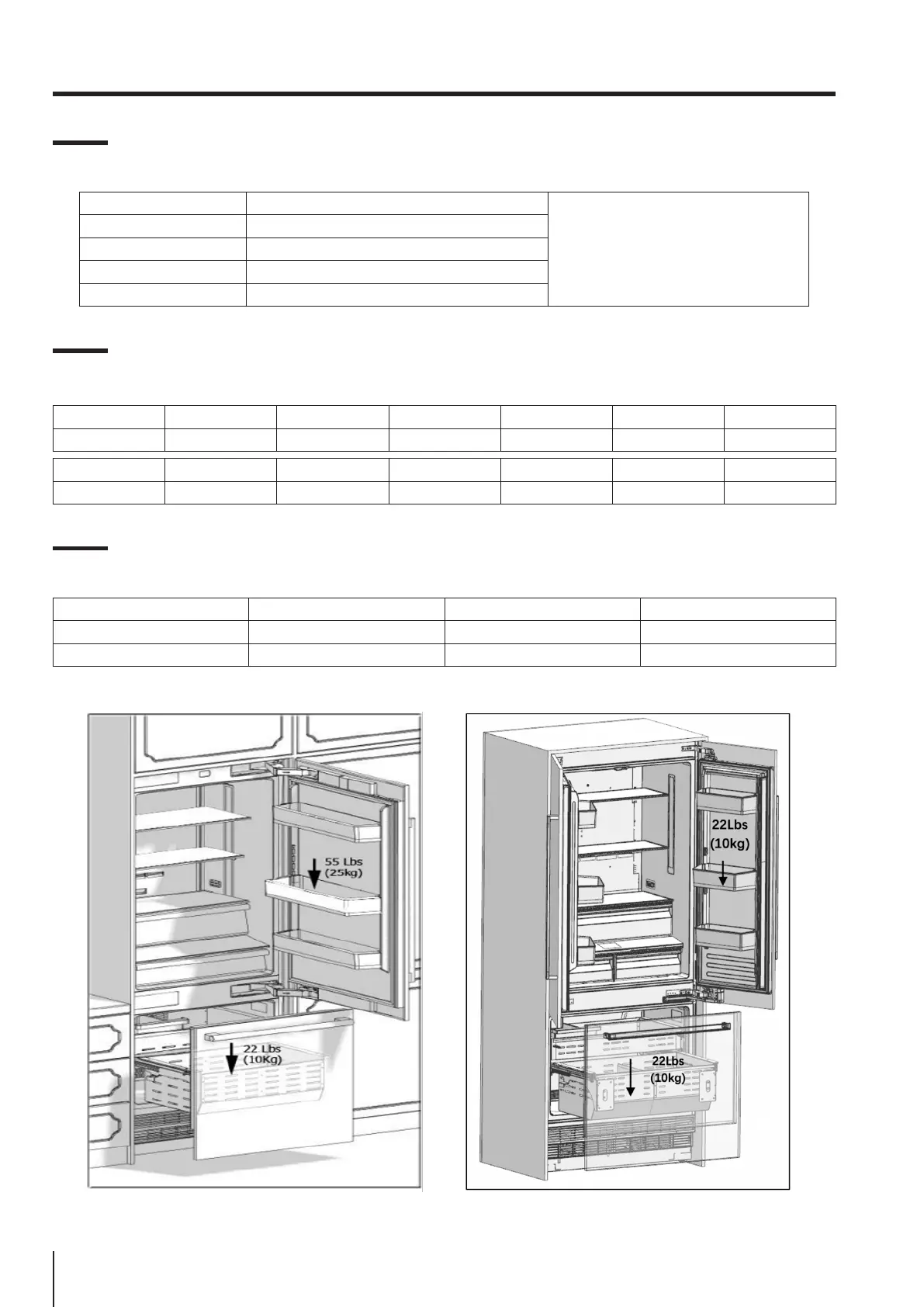 Freezer drawer 22 lb (10 kg) 22 lb (10 kg) 22 lb (10 kg)