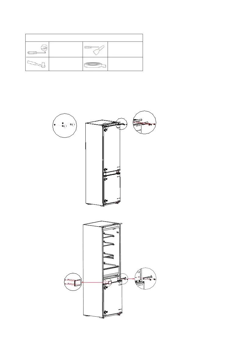 3)Remove the refrigerator door, the middle hinge and the hole cover.
