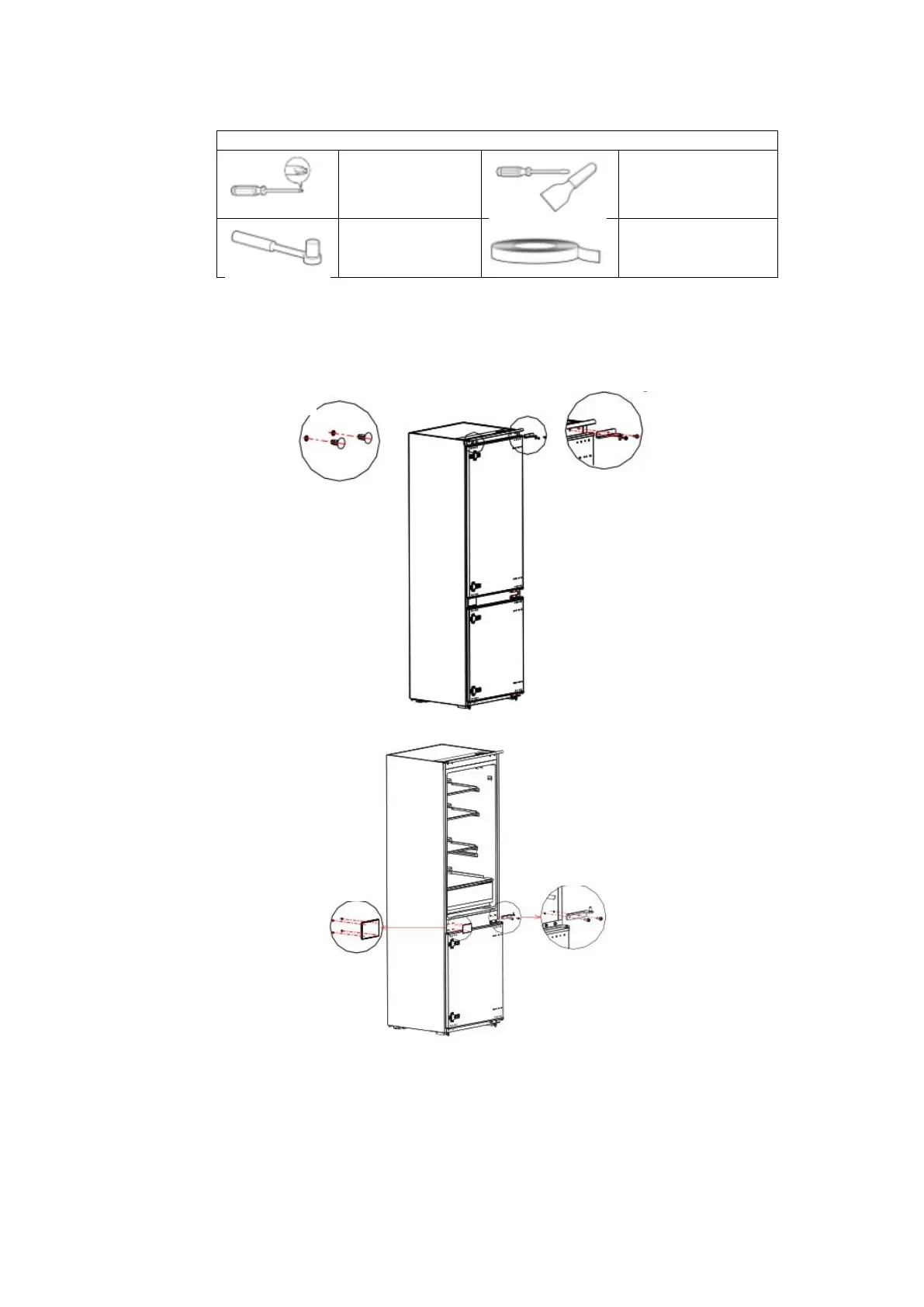 2) Retirez la porte du frigérateur, la charnre et le cache du trou.