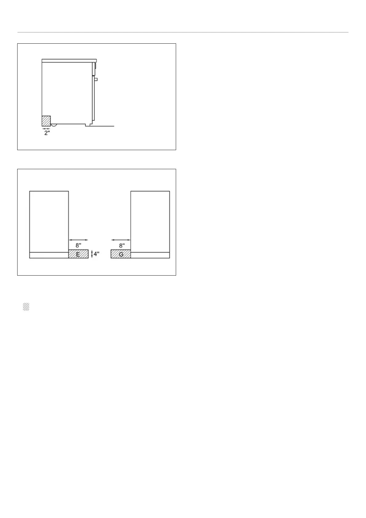 floor and no less than 2″ (5 cm) and no more than 8″ (20.3