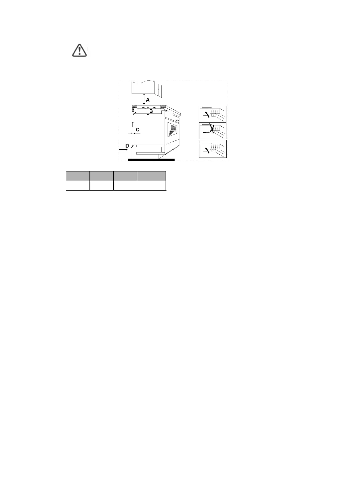 Om en kåpa är installerad över hällen, håll som referens det avstånd som anges i