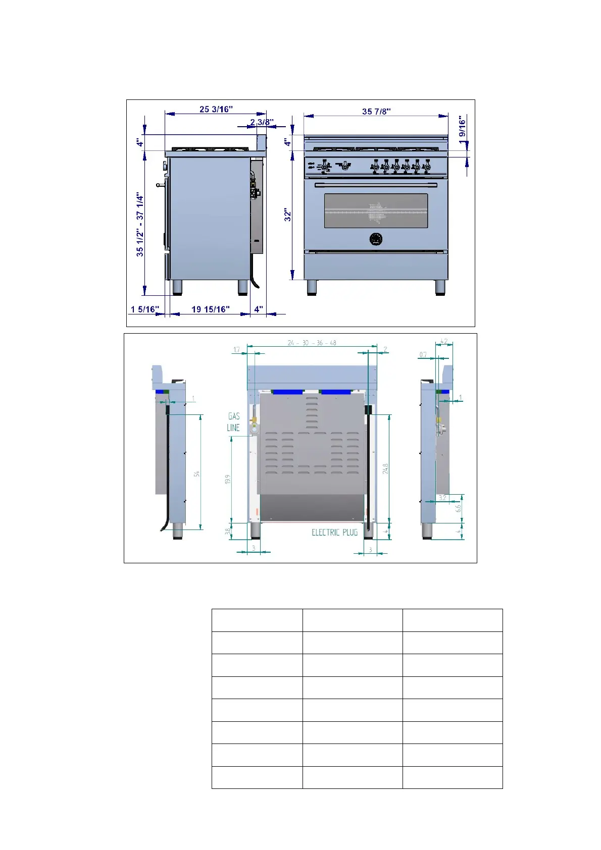 Bertazzoni PRO366GASAR - Product Specifications