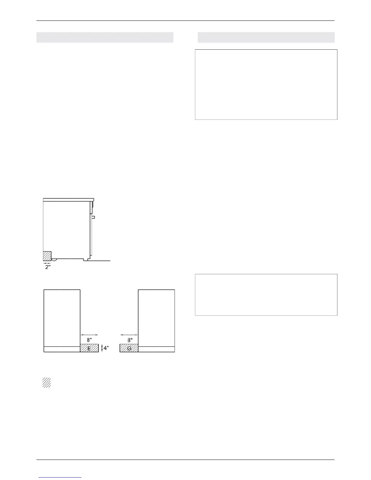 3” (7.6 cm) above the fl oor, no less than 2” (5 cm)