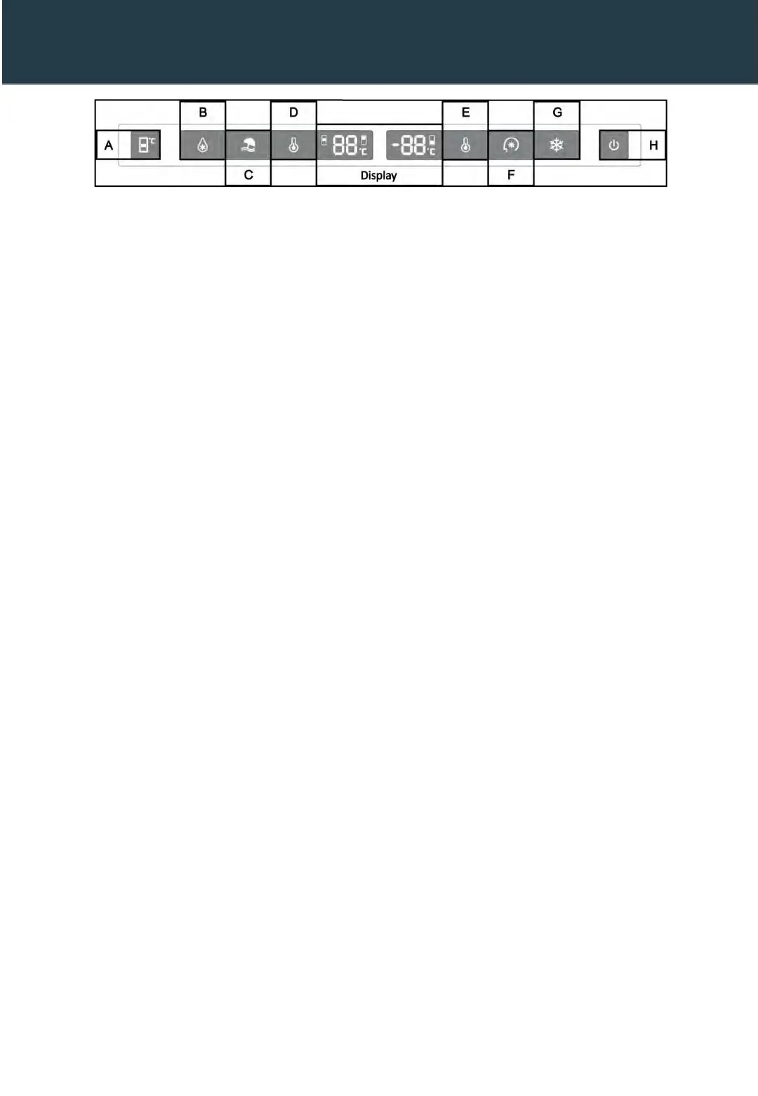 7. Fast Freezing function – Press button G, button illuminates and freezer start to work at Fast Freezing