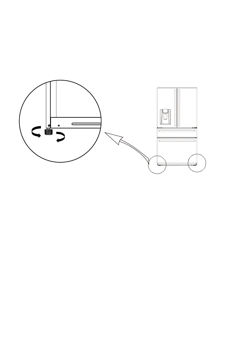 B. Turn the feet counterclockwise to lower the refrigerator.
